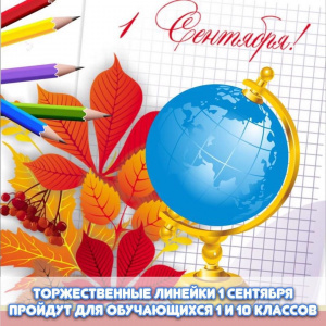 Торжественная линейка для учащихся 1-ых и 10-ых классов состоится 1 сентября 2020 года в 09.30